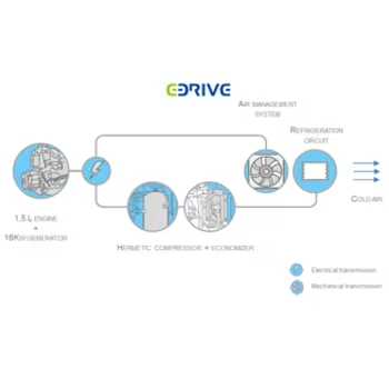 Le groupe Vector 1550 est équipé de la technologie brevetée E-Drive. Bénéficiant du surplus de puissance dû à l’« economizer », les dimensions du compresseur hermétique ont été réduites, ainsi que celles du moteur.